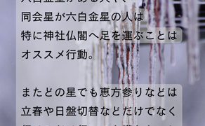 最大吉方に六白金星がある人や、同会星が六白金星の人は特に神社仏閣へ足を運ぶことはオススメ行動。また...