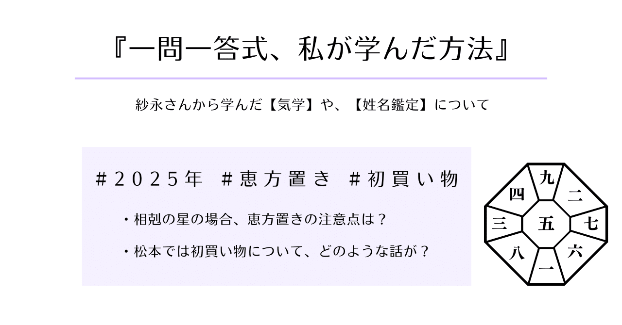 【ご案内】下記note有料記事にて、2025年の恵方置きの注意点や松本での初買い物についてのお話など、紗永さんから学んだことを期間限定公開しています。